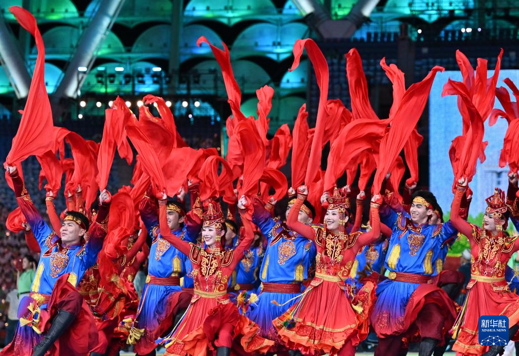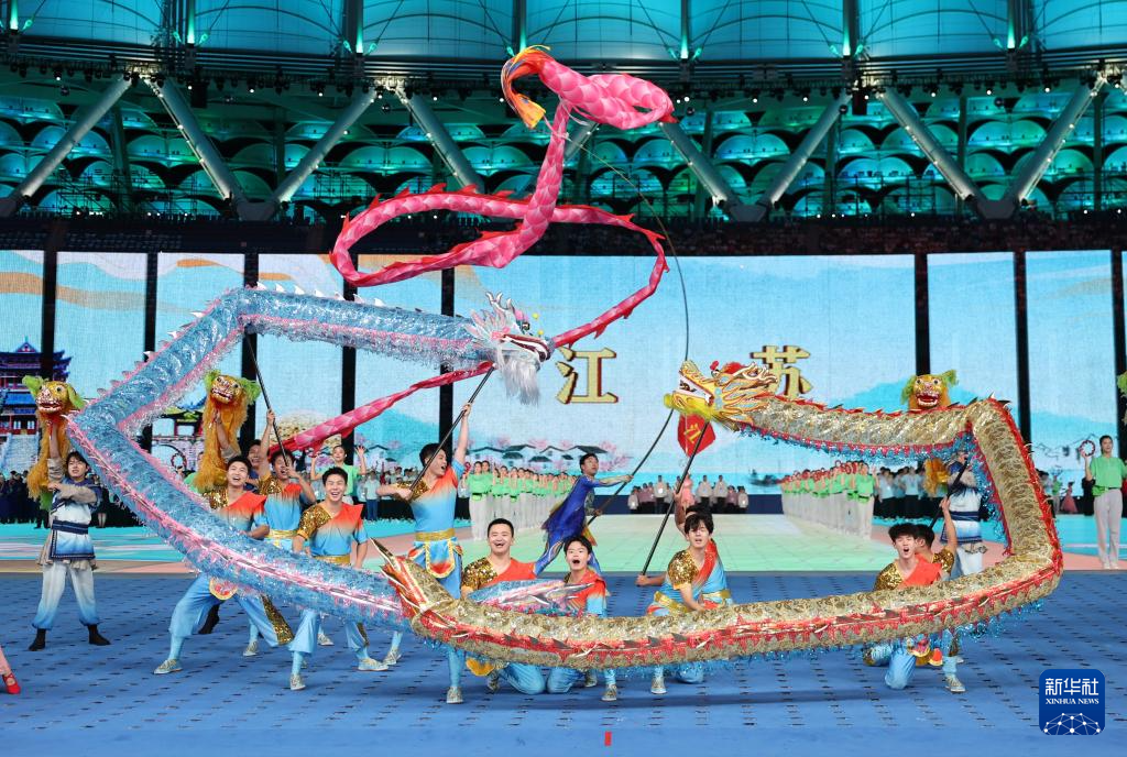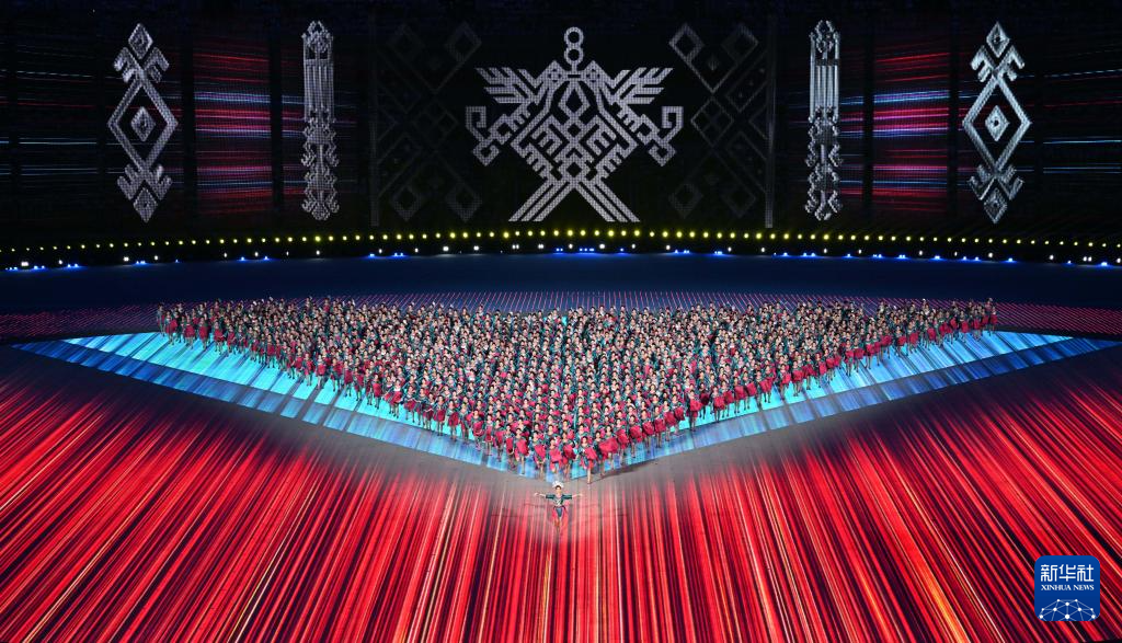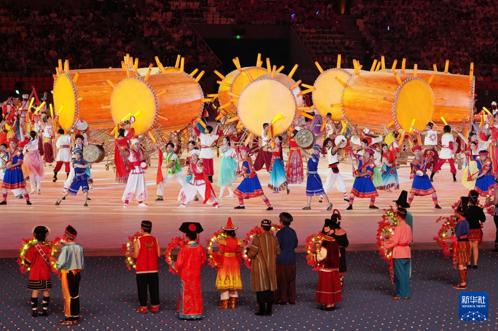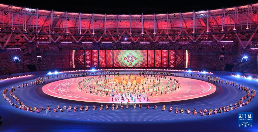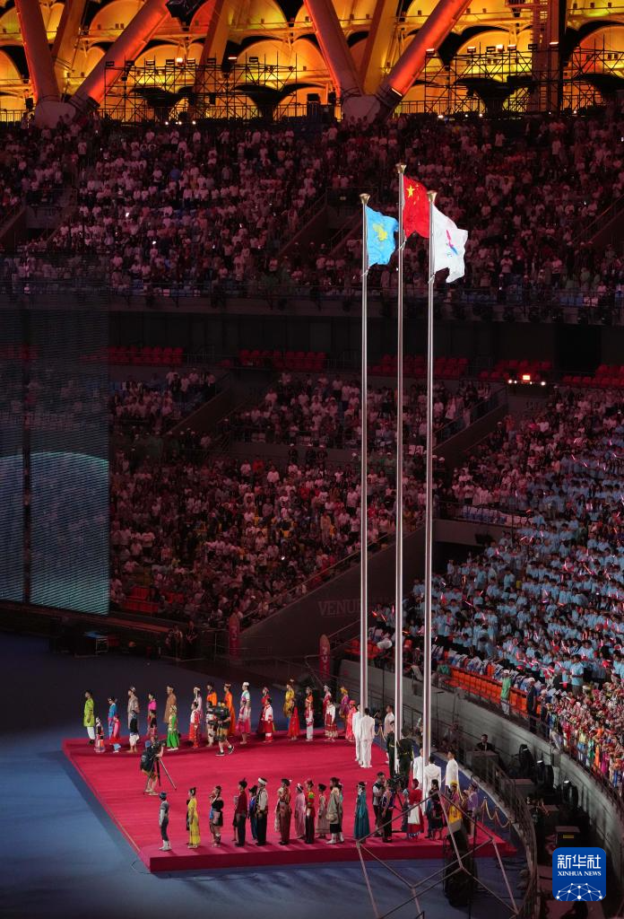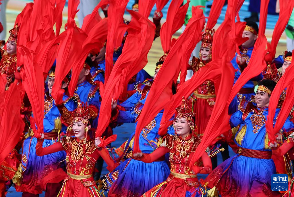11月22日,開幕式現(xiàn)場(chǎng)升起中華人民共和國(guó)國(guó)旗、中華人民共和國(guó)少數(shù)民族傳統(tǒng)體育運(yùn)動(dòng)會(huì)會(huì)旗和中華人民共和國(guó)第十二屆少數(shù)民族傳統(tǒng)體育運(yùn)動(dòng)會(huì)會(huì)旗。