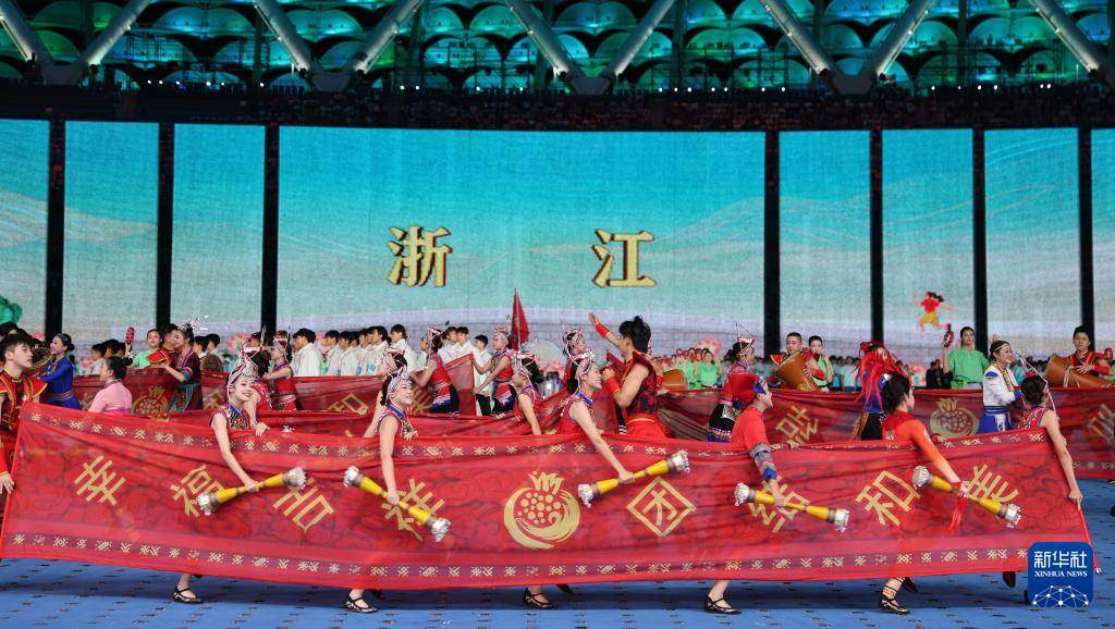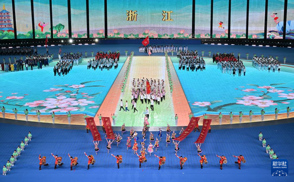 11月22日,浙江省代表團(tuán)在開幕式上入場(chǎng)。