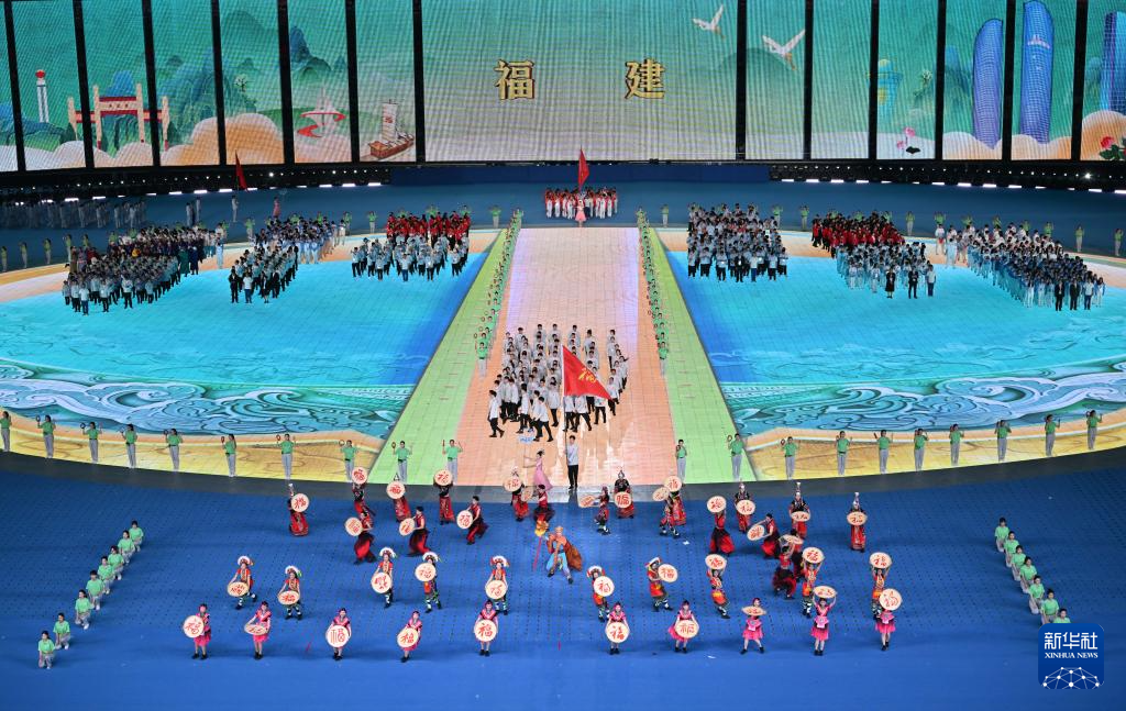 11月22日,福建省代表團(tuán)在開幕式上入場(chǎng)。