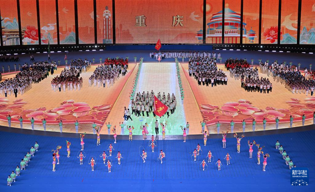 11月22日,重慶市代表團(tuán)在開幕式上入場(chǎng)。