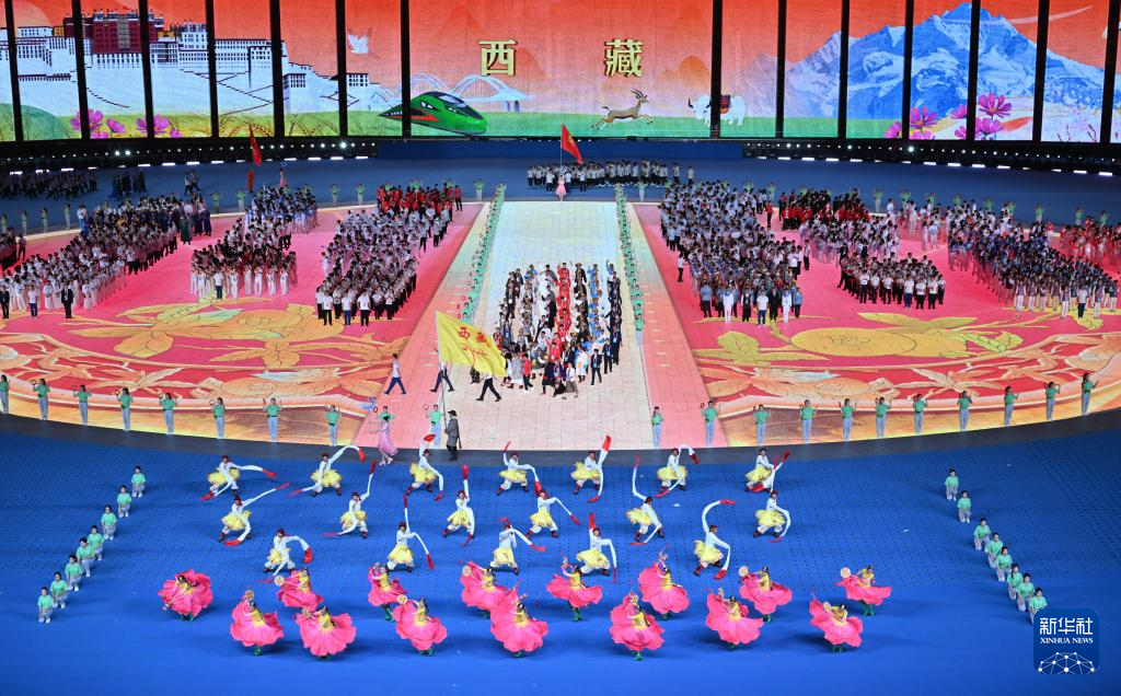 11月22日,西藏自治區(qū)代表團(tuán)在開幕式上入場(chǎng)。