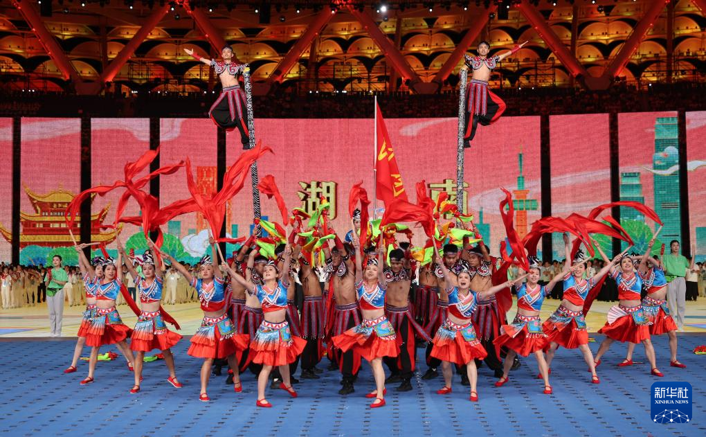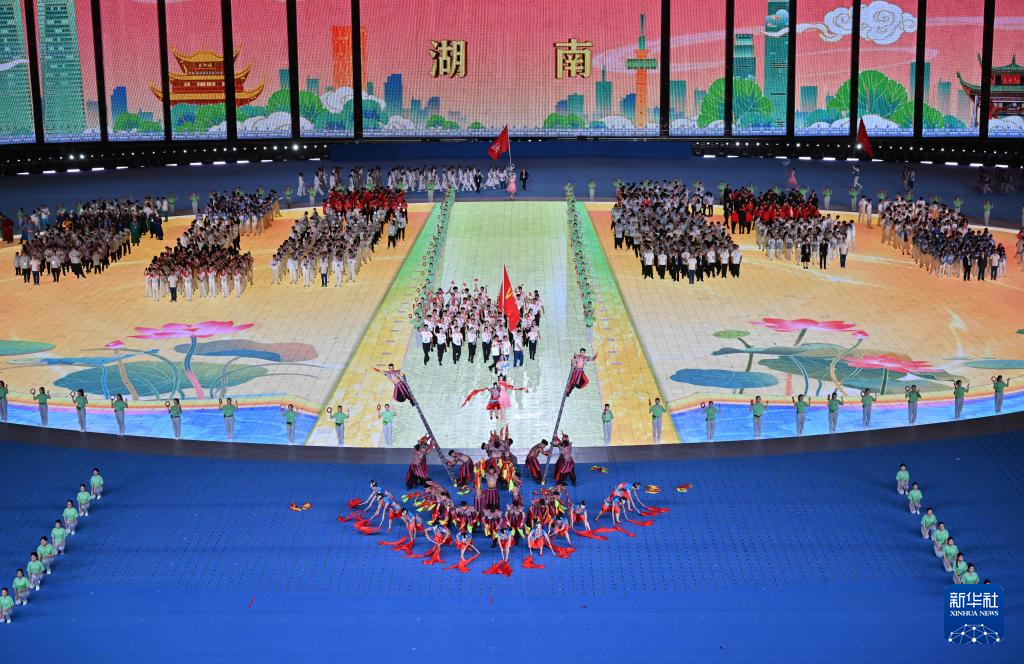 11月22日,湖南省代表團(tuán)在開幕式上入場(chǎng)。