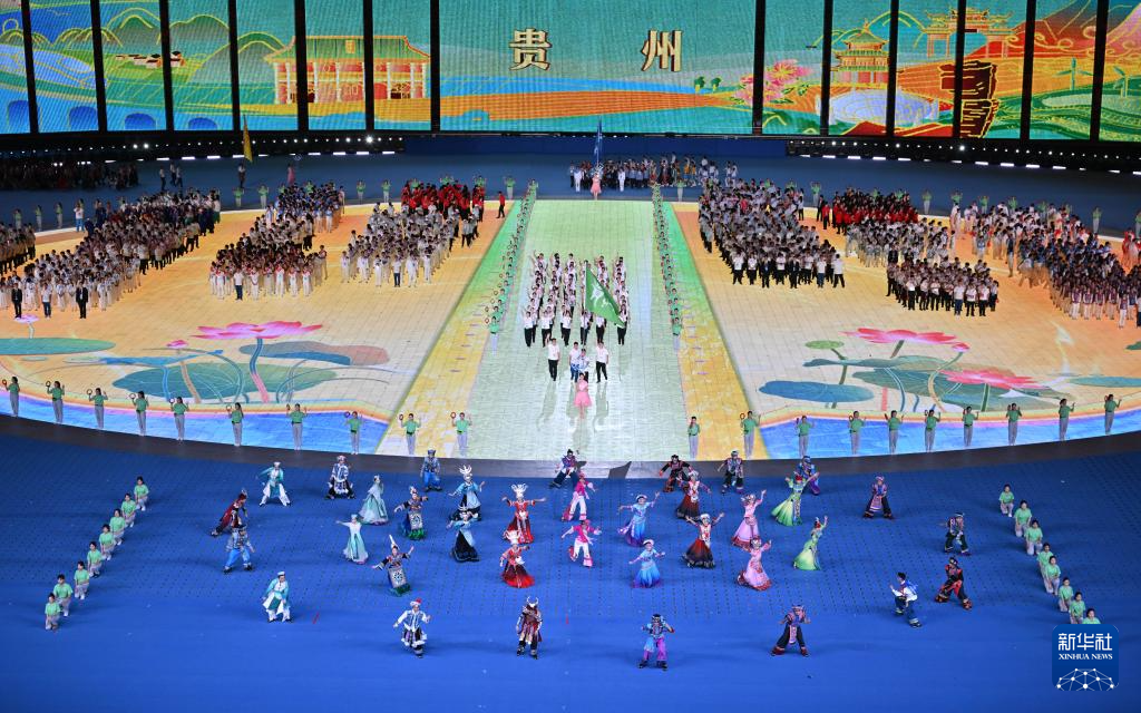 11月22日,貴州省代表團(tuán)在開幕式上入場(chǎng)。