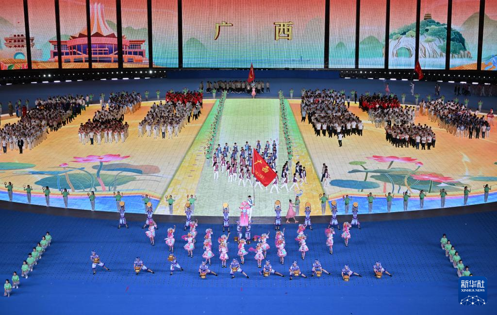 11月22日,廣西壯族自治區(qū)代表團(tuán)在開幕式上入場(chǎng)。