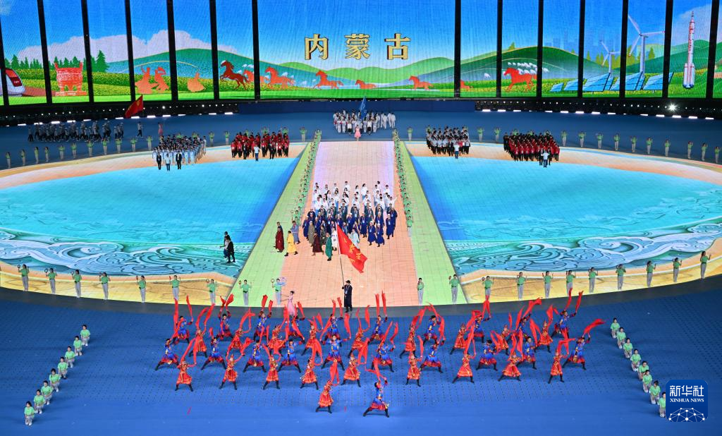 11月22日,內(nèi)蒙古自治區(qū)代表團(tuán)在開幕式上入場(chǎng)。