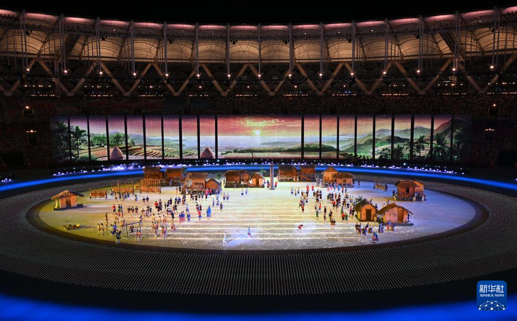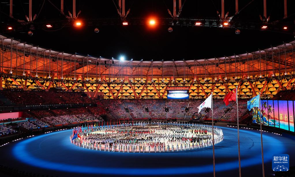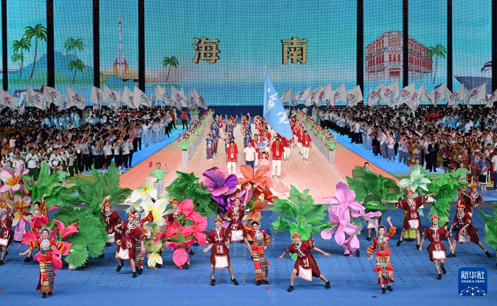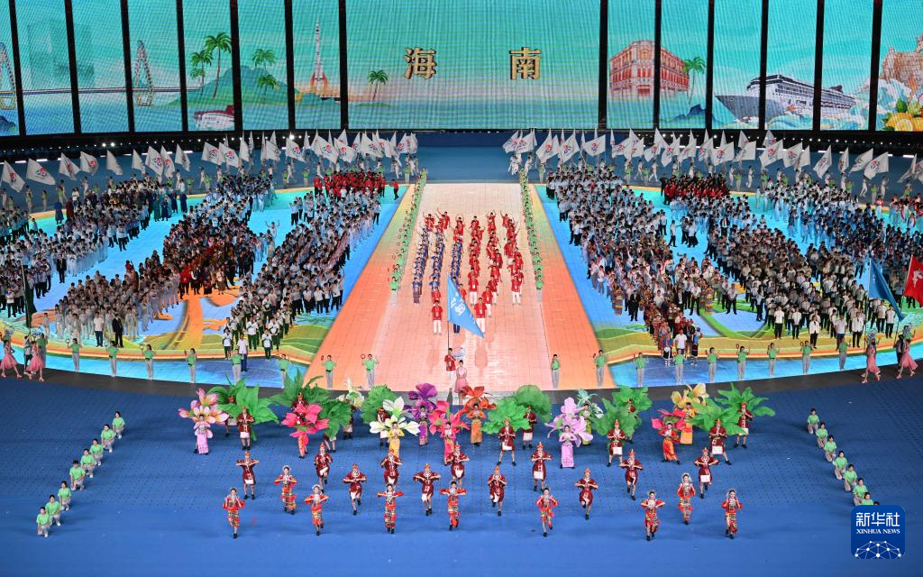 11月22日,海南省代表團(tuán)在開幕式上入場(chǎng)。