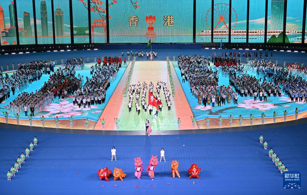 11月22日,香港特別行政區(qū)代表團(tuán)在開幕式上入場(chǎng)。