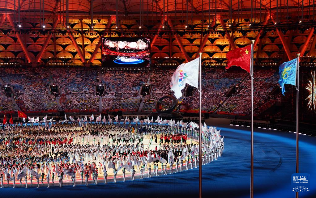 11月22日,四川省代表團(tuán)在開幕式上入場(chǎng)。