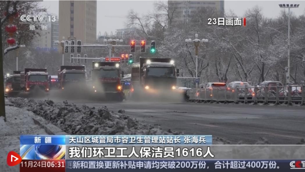 11月22日下午到11月23日16時,烏魯木齊迎來降雪,最大積雪深度達(dá)20厘米。城管部門連夜作業(yè),快速出動大型清雪車輛和環(huán)衛(wèi)工人進(jìn)行清雪。