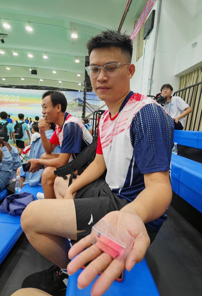 “香港隊(duì)很厲害,沒(méi)想到他們還給我們準(zhǔn)備了禮物,挺驚喜的?!蔽鞑仃?duì)毽球運(yùn)動(dòng)員韋盛森從褲兜里掏出一個(gè)精致的粉色毽球掛飾給記者看,并懊惱自己沒(méi)有準(zhǔn)備禮物。“賽后我們和香港隊(duì)說(shuō)了很多互相鼓勵(lì)的話,我們希望找機(jī)會(huì)再和他們交流。”