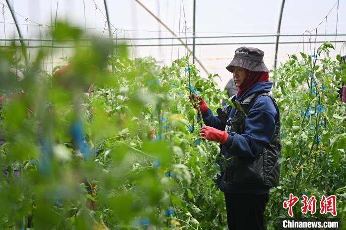 馬芬蓮和工友們忙著給番茄苗整枝打杈,她額頭上因地震房屋倒塌留下的疤痕仍清晰可見。與記者交流時(shí),不時(shí)有同村婦女打來(lái)視頻電話咨詢種植問(wèn)題。