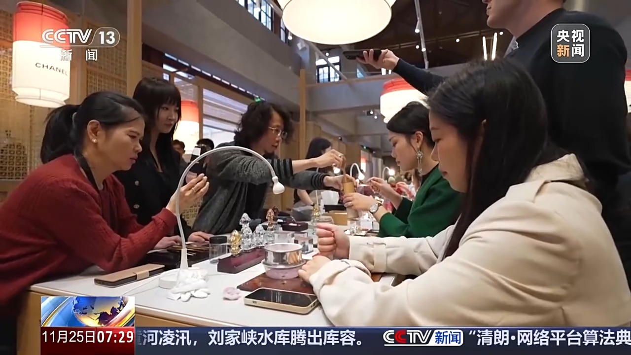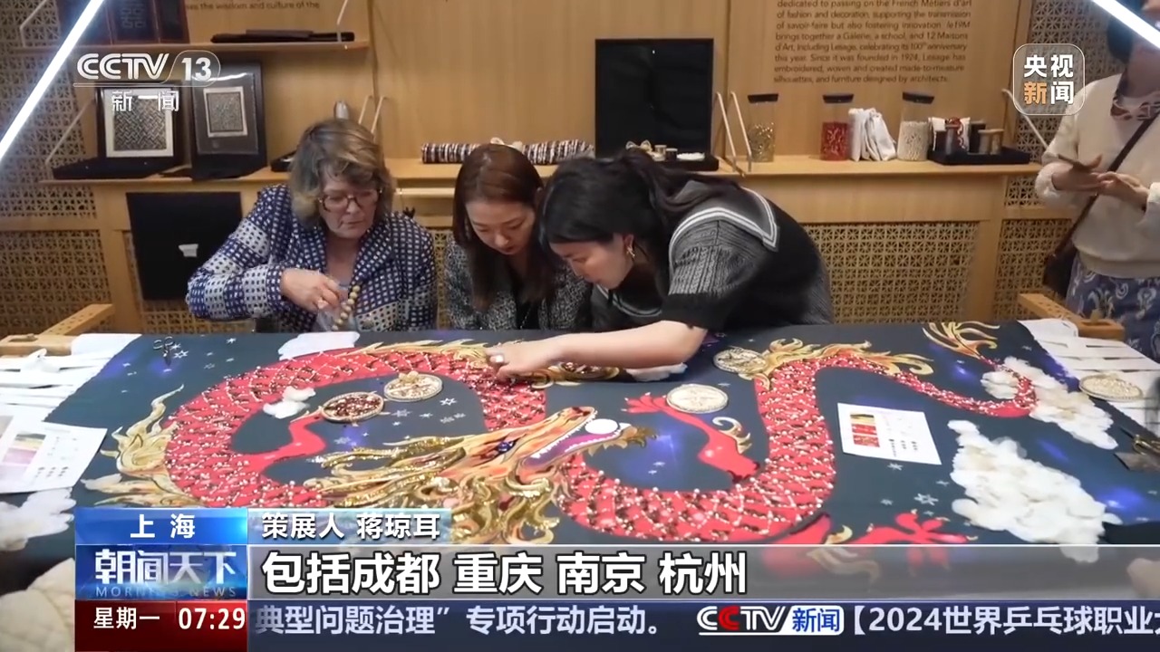 總臺央視記者 高媛:我身后這個不大的空間里擠滿了人,這里聚集了17個來自法國的品牌。它們展出的不只是產(chǎn)品,而是背后的工藝。精美的產(chǎn)品變成了一針一線的故事,觀眾還可以參與其中。