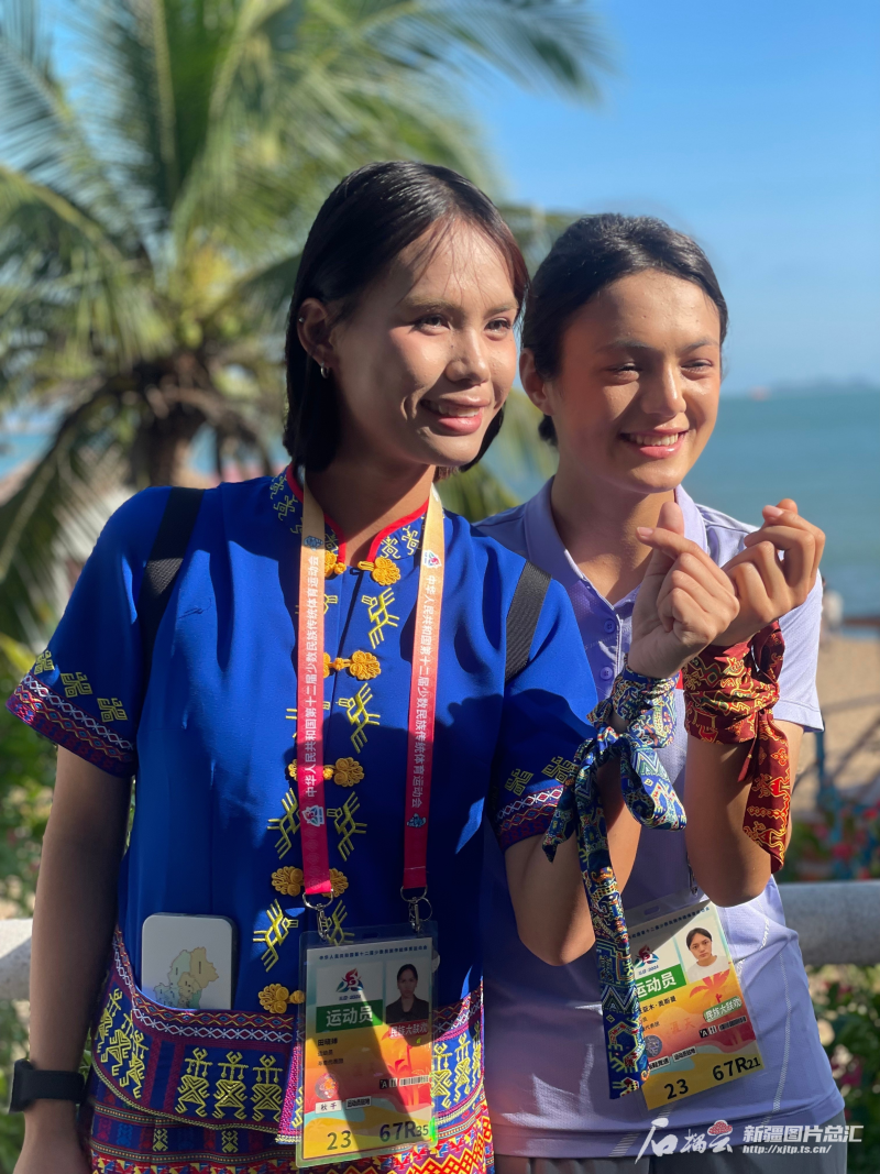 “活動特別有趣,一直持續(xù)到黃昏,可以說是一個浪漫又具有海邊風(fēng)情的民族團結(jié)大聯(lián)歡。”新疆代表團秋千競賽項目運動員巴合提古麗·珠曼說,從開始的歡迎儀式就特別驚喜,道路兩邊有各個民族的志愿者,跳著舞、敲著牛皮鼓迎接大家。