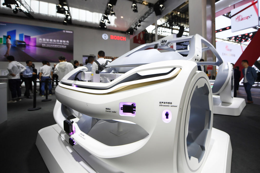 4月25日,在北京車展上,博世公司展臺展出可用于新能源汽車智能出行解決方案的相關(guān)產(chǎn)品。新華社記者鞠煥宗攝