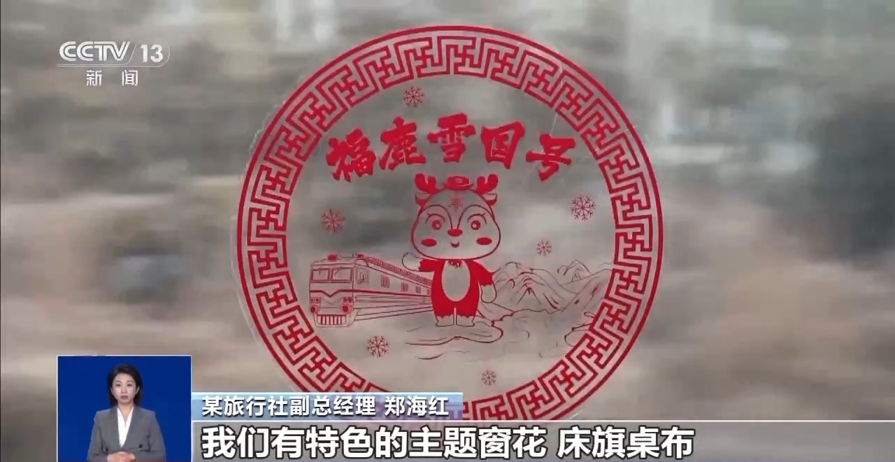 某旅行社副總經(jīng)理 鄭海紅:在列車內(nèi)部做了一個整體裝飾,我們有特色的主題窗花,床旗桌布,讓南方的“小金豆”來到黑龍江,不但能夠賞冰看雪,還能體驗到我們黑龍江獨有的鄂倫春的非遺,感受冰雪給大家?guī)淼恼鸷场?/p>