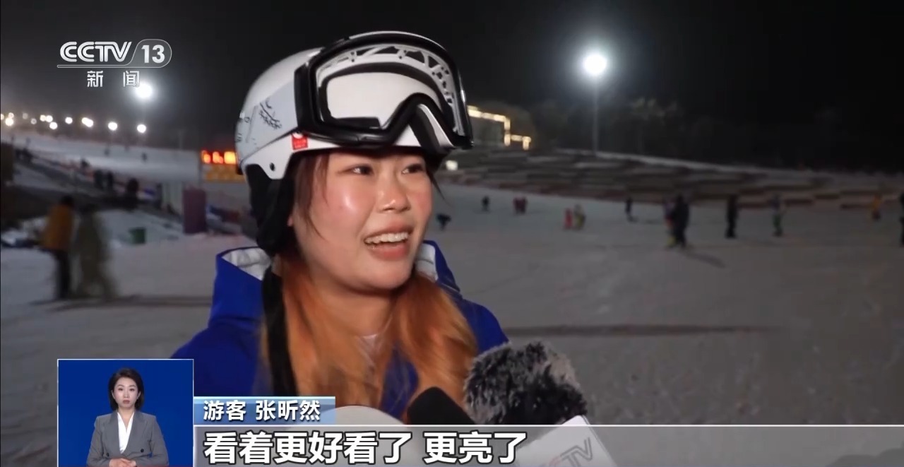 游客 張昕然:比上一年更好了,更好看了更亮了,能更好看清楚雪道的情況,也特別好躲避前方的人。