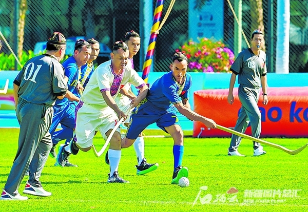 11月24日上午,男子珍珠球第二輪小組賽中山東隊(duì)與新疆隊(duì)比拼。比賽結(jié)束后,兩隊(duì)在場外同喊口號(hào)、互贈(zèng)紀(jì)念品;26日,民族大聯(lián)歡文化活動(dòng)上,全國各地代表團(tuán)相聚“天涯海角”景區(qū),各族運(yùn)動(dòng)員在海邊延展出一條綿長的“民族風(fēng)景線”;27日,新疆代表團(tuán)在駐地酒店精心籌備了聯(lián)歡會(huì),新疆、湖南、云南、黑龍江等地代表團(tuán)歡聚一堂,共敘友情。