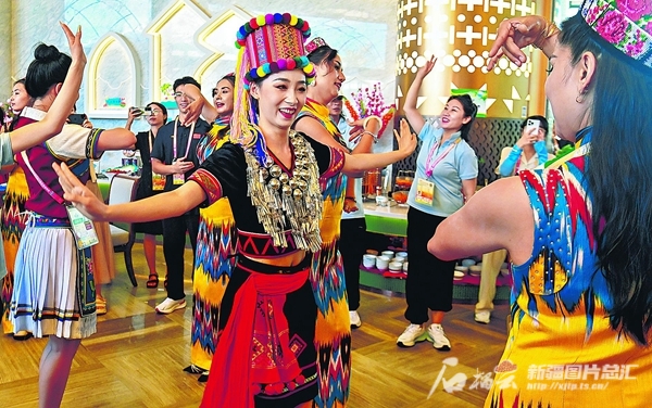 新疆代表團(tuán)分別參加7個(gè)競賽項(xiàng)目和3個(gè)表演項(xiàng)目。一幕幕增進(jìn)友誼、促進(jìn)團(tuán)結(jié)的場景在賽場內(nèi)外涌現(xiàn),團(tuán)結(jié)奮斗之光閃耀天涯海角。