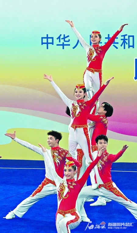 11月25日,新疆代表團(tuán)民族健身操隊(duì)隊(duì)員正在比賽。