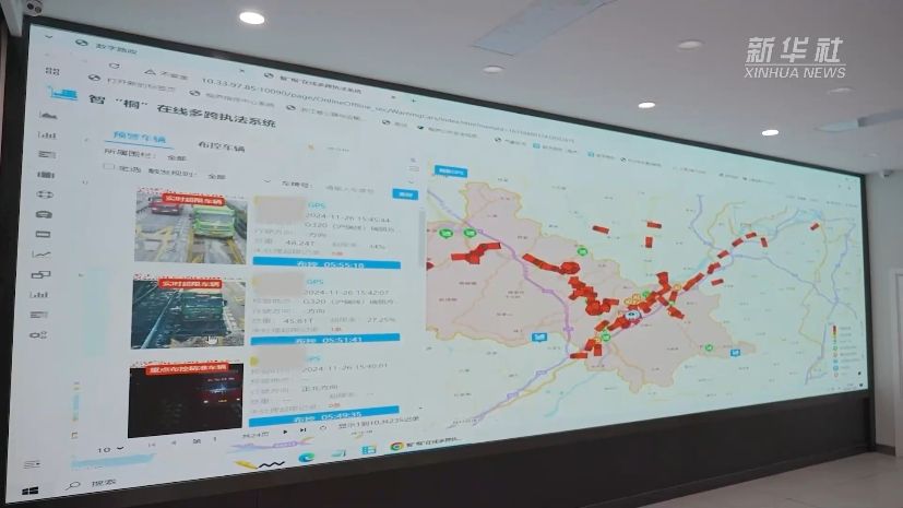 有著“快遞之鄉(xiāng)”之稱的浙江桐廬縣,道路交通運輸繁忙。為此,桐廬縣開創(chuàng)“數(shù)字治超+信用治超”新模式。在智“桐”在線多跨執(zhí)法平臺上,記者看到,桐廬縣縣域已被設(shè)置電子圍欄,圍欄里分布有不同顏色的圖標。工作人員正緊盯智“桐”在線多跨執(zhí)法平臺,開展數(shù)據(jù)分析和違法行為查處。