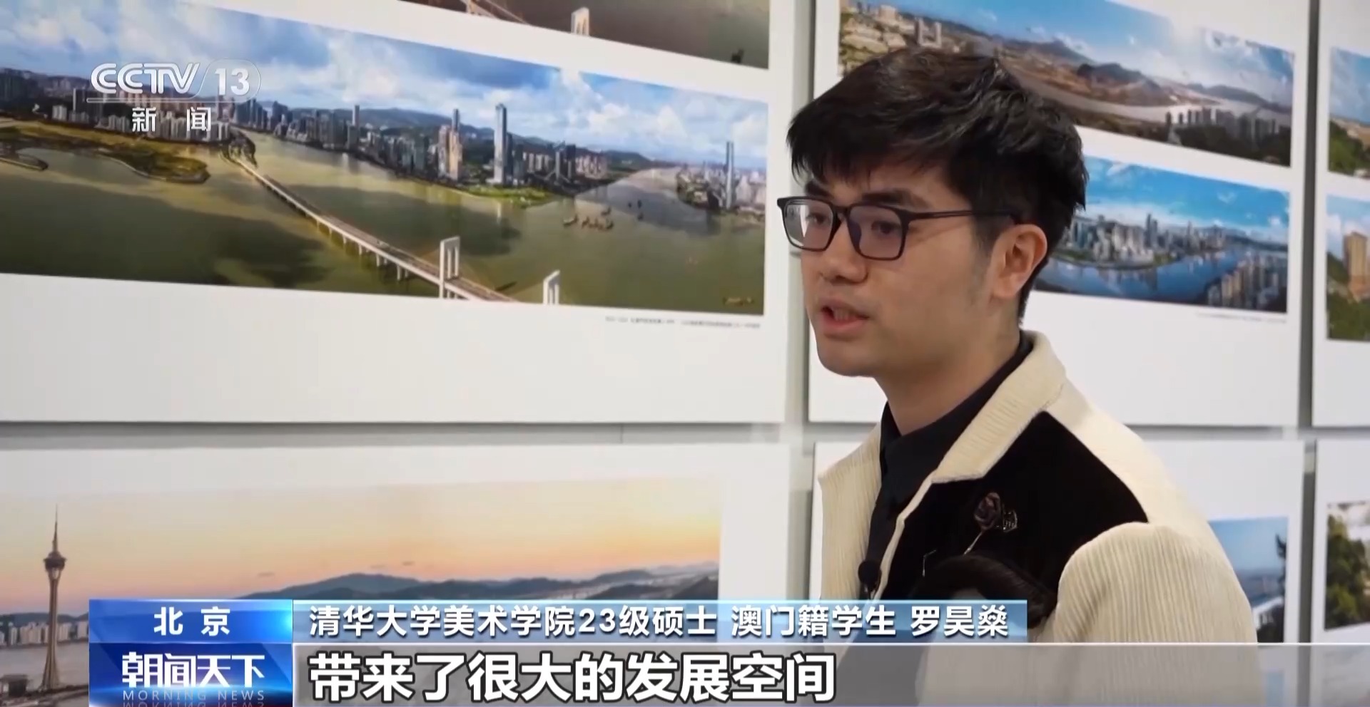 清華大學(xué)美術(shù)學(xué)院23級(jí)碩士 澳門(mén)籍學(xué)生 羅昊燊:我家就在老城區(qū)這塊,從小在這里長(zhǎng)大,這么多年還保留了澳門(mén)原來(lái)的文化色彩。主要是發(fā)展周邊的一些區(qū)域。我也看著周?chē)鷱幕氖徔盏?,發(fā)展成很多高樓大廈。它的建設(shè)為我們年輕人帶來(lái)了很大的發(fā)展空間。
