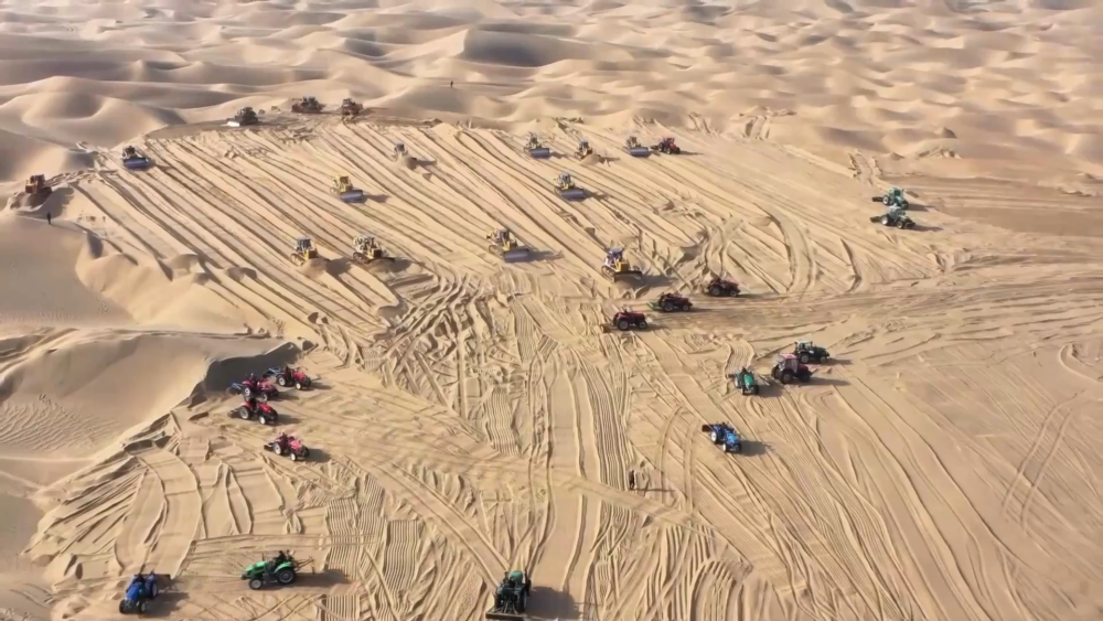 在發(fā)展沙產(chǎn)業(yè)的過程中,新疆和田地區(qū)民豐縣多措并舉深入推進(jìn)“三北”工程攻堅(jiān)戰(zhàn)、扎實(shí)推進(jìn)塔克拉瑪干沙漠邊緣阻擊戰(zhàn)。12月5日,民豐縣后河壩沙漠邊緣,大型推土機(jī)來回穿梭、平整沙地。一大早,尼雅鎮(zhèn)甫甫克村村民麥麥提·麥提賽伊迪與愛人就來到自己承包的沙地,查看沙丘的平整情況。