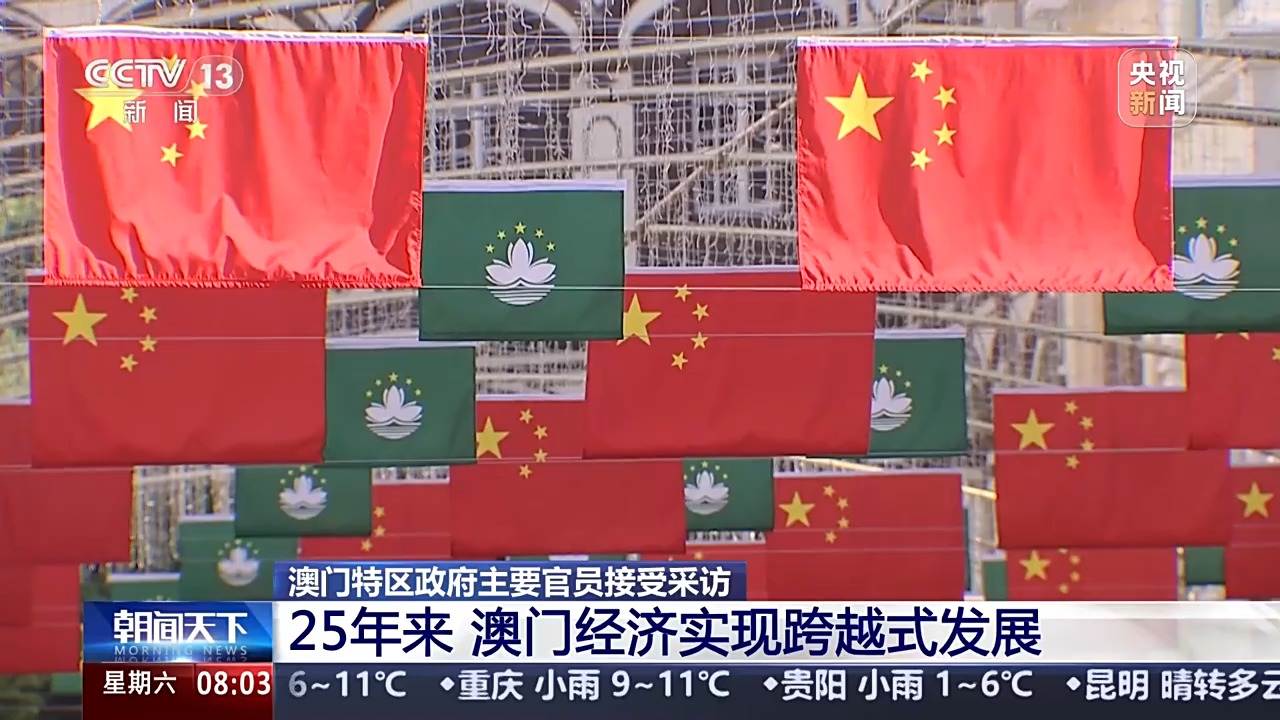 澳門回歸祖國25年來,向世界展示了具有澳門特色“一國兩制”的成功實踐。澳門特區(qū)政府主要官員近日接受記者采訪時表示,25年來,澳門經(jīng)濟快速增長、民生持續(xù)改善,在融入國家發(fā)展大局的進程中,澳門也迎來愈加廣闊的發(fā)展天地。
