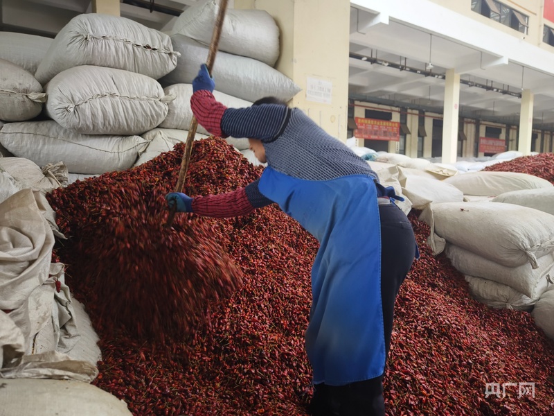 裝袋好的辣椒正等著運(yùn)往各地(央廣網(wǎng)記者 欒小琳 攝)
