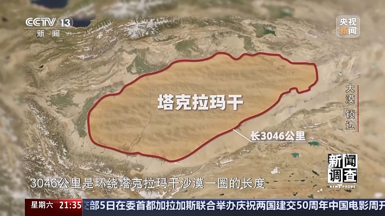 2023年6月,習(xí)近平總書記在內(nèi)蒙古巴彥淖爾市主持召開加強(qiáng)荒漠化綜合防治和推進(jìn)“三北”等重點生態(tài)工程建設(shè)座談會,強(qiáng)調(diào)要打好河西走廊——塔克拉瑪干沙漠邊緣阻擊戰(zhàn)等三大戰(zhàn)役。3046公里,是環(huán)繞塔克拉瑪干沙漠一圈的長度。過去40多年,依托“三北”防護(hù)林體系工程建設(shè),塔克拉瑪干沙漠周邊已形成長達(dá)2761公里的綠色阻沙防護(hù)帶。截至2023年底,還剩285公里的空白區(qū)。塔克拉瑪干沙漠邊緣阻擊戰(zhàn)的首要任務(wù),就是要補(bǔ)齊缺口,給沙漠“鎖邊”。
