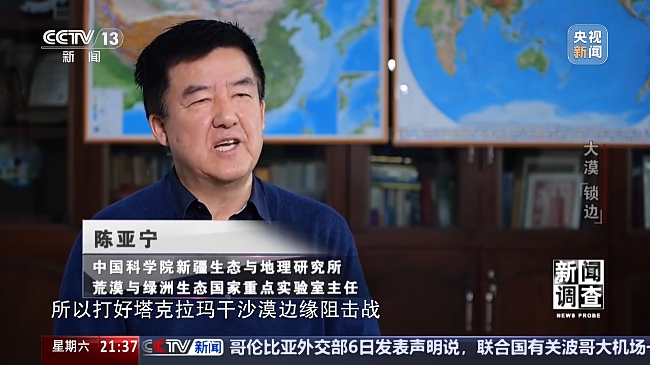 中國科學(xué)院新疆生態(tài)與地理研究所荒漠與綠洲生態(tài)國家重點實驗室主任 陳亞寧:和田地區(qū)大概就是256萬人,由于人均耕地面積少,經(jīng)濟(jì)發(fā)展相對也滯后。也是脫貧攻堅成果鞏固和拓展難度最大的一個區(qū)域,所以在打好塔克拉瑪干沙漠邊緣阻擊戰(zhàn),對和田地區(qū)的經(jīng)濟(jì)社會發(fā)展、農(nóng)民增收是有著重要意義的。我們帶著隊伍進(jìn)行了將近兩個多月的實體調(diào)研,那我們調(diào)查什么呢?第一這里的地理環(huán)境、自然生態(tài)條件、水資源情況,同時我們也收集到他們當(dāng)?shù)剡@么多年防沙治沙的一些成功經(jīng)驗和教訓(xùn),我們也進(jìn)行了訪談,結(jié)果我們就提出了一種從不同生態(tài)條件、不同沙害和不同水源條件下如何防沙治沙,實現(xiàn)沙漠鎖邊等一些建議、措施和總體規(guī)劃。