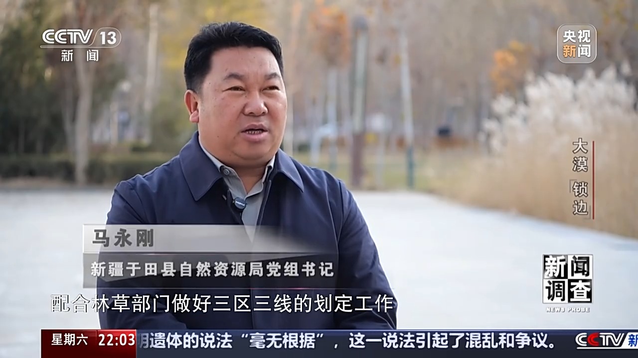 新疆于田縣自然資源局黨組書記 馬永剛:于田縣自然資源局在塔克拉瑪干阻擊戰(zhàn)承擔(dān)的就是項目的選址預(yù)審,配合林草部門做好三區(qū)三線的劃定工作,三線主要審核了在我們的塔克拉瑪干防沙治沙范圍內(nèi)是否占用了基本農(nóng)田,是否占用了生態(tài)紅線,是否存在有礦產(chǎn)壓覆的現(xiàn)象,是否存在一些相關(guān)的土地糾紛問題,進(jìn)行嚴(yán)格復(fù)核,并由林草、水利等相關(guān)部門同步出具相關(guān)的意見。