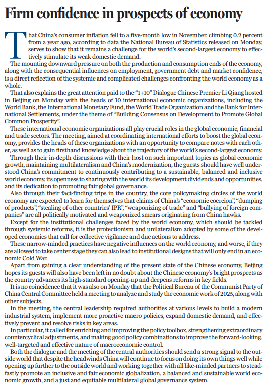 “1+10”對話的同一天,中共中央政治局12月9日召開會議,分析研究2025年經(jīng)濟工作及其他議題。