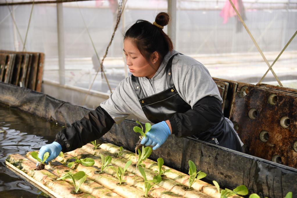 11月28日,在孫振鴻的農(nóng)場里,一名工人正在種植有機蔬菜。新華社記者 洪澤華 攝