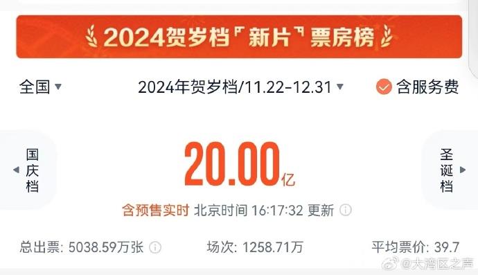 據(jù)網(wǎng)絡(luò)平臺數(shù)據(jù),截至12月22日16時(shí)17分,2024年賀歲檔(11月22日—12月31日)檔期電影票房(含預(yù)售)突破20億。