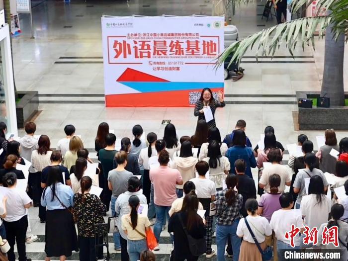 每天早上8:40-9:20,趕在大量顧客到來之前,在義烏國際商貿(mào)城的各個(gè)區(qū)塊都可以看到上百位集體晨讀、學(xué)習(xí)英語的人。其中大部分是市場(chǎng)內(nèi)的老板娘,很多都經(jīng)營(yíng)著上千萬年外貿(mào)訂單的商鋪。