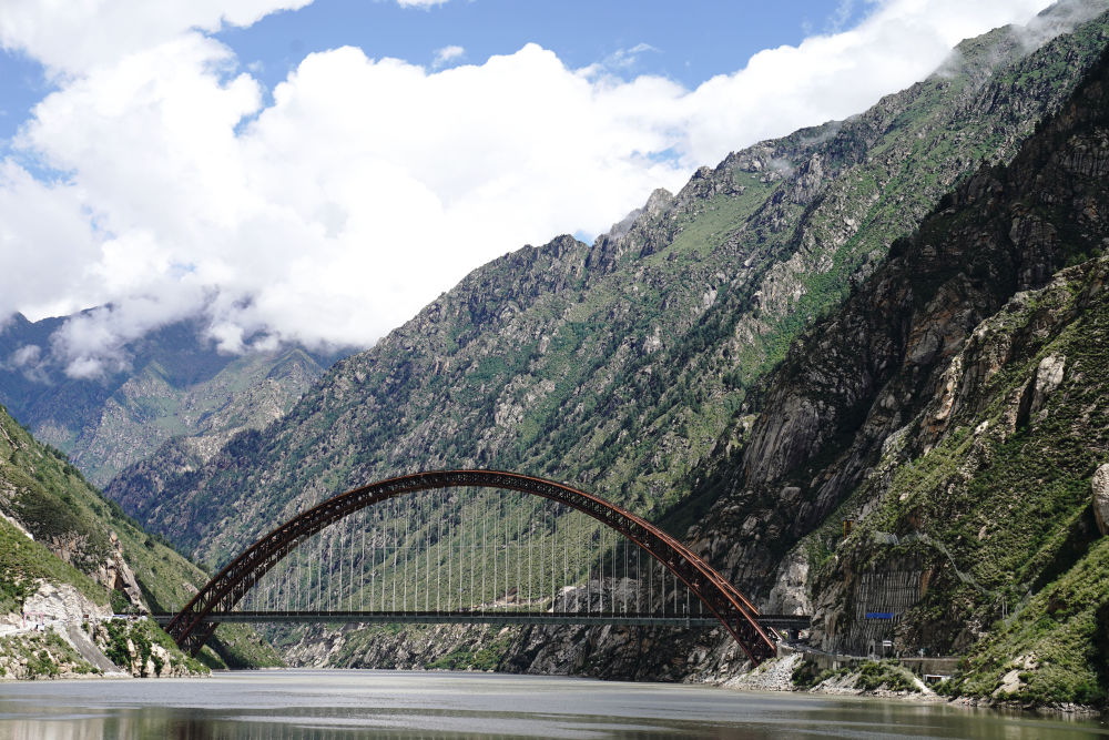 藏木雅魯藏布江雙線特大橋全長(zhǎng)525.1米,主拱跨徑430米(2021年7月11日攝)。 新華社記者 劉洪明 攝