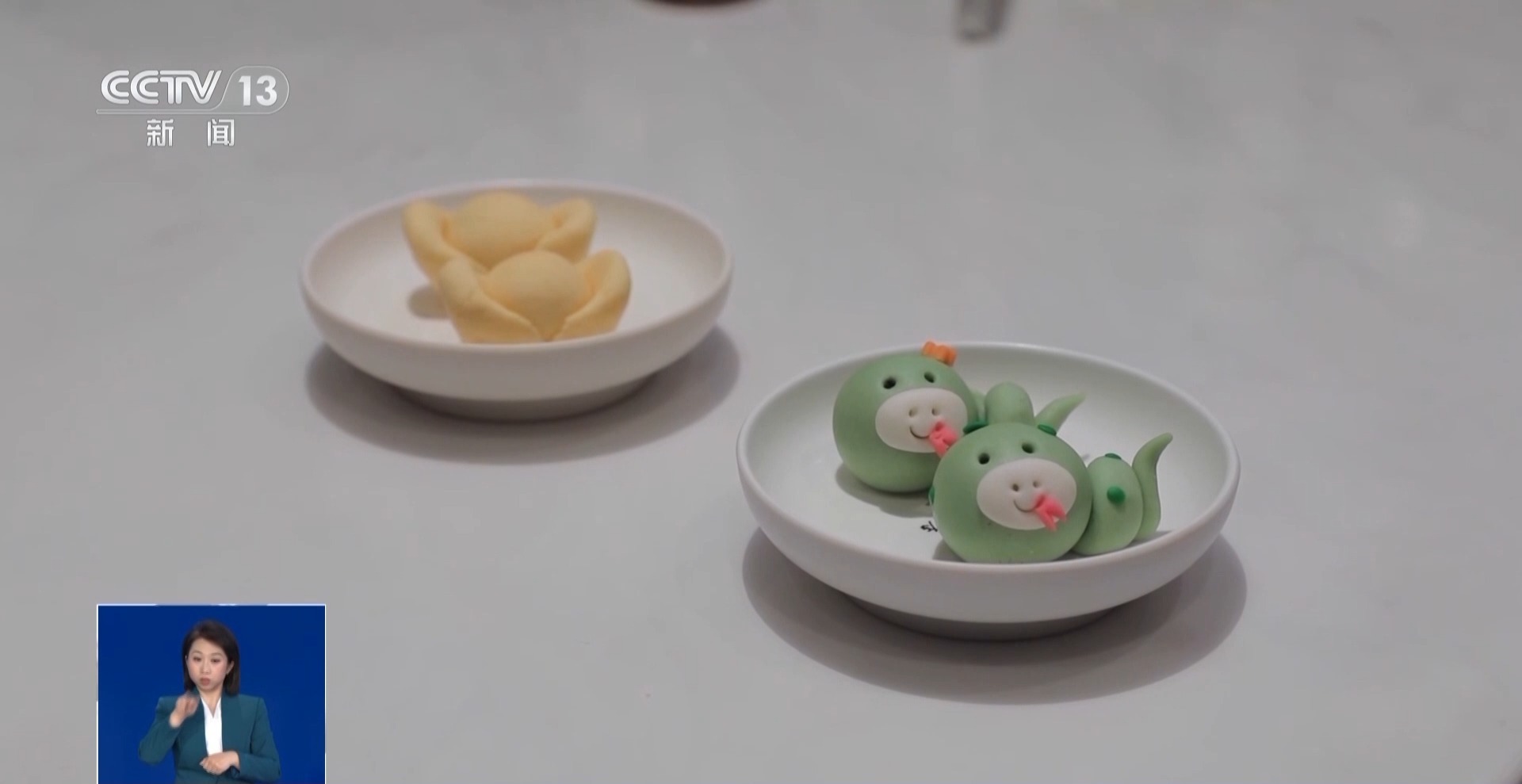 除了“年夜飯+賞燈游”,有的餐廳還創(chuàng)新菜品形態(tài),結(jié)合即將到來的乙巳蛇年,推出了卡通蛇形象的各種小吃、甜品,受到不少消費者的歡迎。
