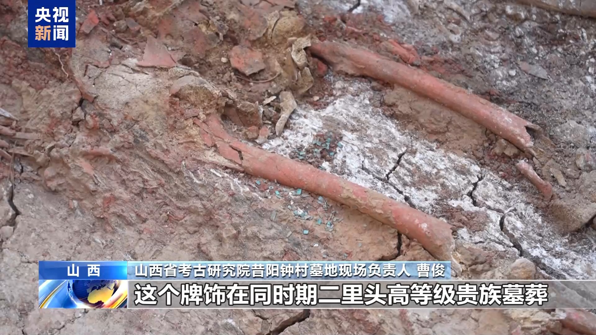 三星堆遺址工作站副站長 許丹陽:有一件玉人像,和長江中游地區(qū)的肖家屋脊文化出土的玉器有相似之處,表明與長江中游地區(qū)也有聯(lián)系。新發(fā)現(xiàn)的這些玉石器,不僅增加了我們對三星堆玉石器種類的認識,而且也豐富了我們對三星堆與周邊地區(qū)文化交流的認識。表明以三星堆遺址為代表的古蜀文化與周邊地區(qū)同時期的文化存在著廣泛交流,也是中華文明多元一體格局的重要實證。 意外發(fā)現(xiàn)夏商大型墓葬 出土哪些文物? 此次國家文物局發(fā)布的重大項目中,還有一項考古發(fā)現(xiàn)是“意外之喜”??脊湃藛T今年在山西省晉中市昔陽縣鐘村社區(qū),意外發(fā)現(xiàn)了一處夏商之際高等級墓地,來看看目前出土了哪些文物? 目前已確認它是夏商之際黃土高原東部發(fā)現(xiàn)規(guī)模最大、等級最高的墓地,年代距今約3500年,其中5座夏商之際的高等級墓葬,是本次發(fā)掘的重要收獲。 山西省考古研究院昔陽鐘村墓地現(xiàn)場負責人 曹俊:這5座墓的規(guī)模非常大,單體墓葬的規(guī)模大,等級高,可以說是一個王級別的墓葬。這個規(guī)格的墓葬可以說是獨立于二里頭夏王朝之外的另外一個小的王國。 已發(fā)現(xiàn)的墓葬隨葬品均在器物箱中出現(xiàn),有陶器、漆器、綠松石器等50余件套,器類組合有管流陶爵、陶斝、陶觚、陶罐等。其中,10號墓的規(guī)模最大,墓主人是一名男性,身體涂有朱砂,頭頂覆有扇貝,左側股骨下隨葬綠松石嵌片牌飾,具有明顯的二里頭文化因素。 山西省考古研究院昔陽鐘村墓地現(xiàn)場負責人 曹?。?/strong>扇貝覆面這種喪葬習俗,目前是從先商,大概是二里頭四期,一直到商代晚期有使用。男性墓主人右側股骨位置,有一個由綠松石的小碎片,嵌片組成的一個綠松石牌飾。這個牌飾在同時期二里頭高等級貴族墓葬才隨葬的。我們經(jīng)過綠松石礦源的檢測分析,初步判斷綠松石的礦源來自 東秦嶺地區(qū)。這件綠松石牌飾的出土表明它與二里頭之間很可能存在很密切的文化交流的關系。
