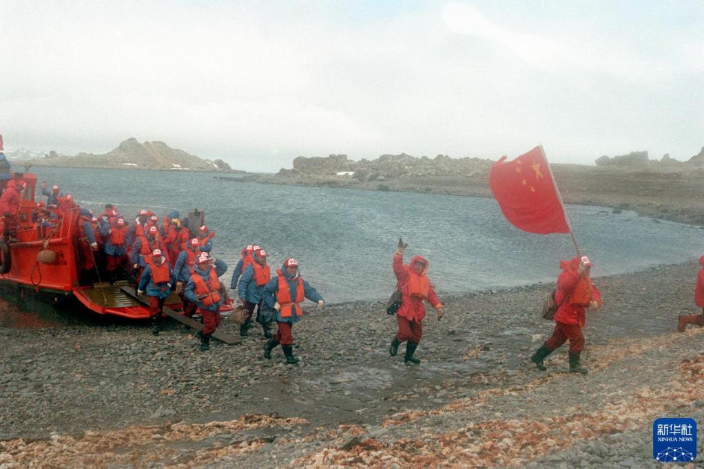 1984年12月30日,中國南極考察隊在喬治王島菲爾德斯半島的灘頭登陸成功。 新華社記者 朱幼棣 攝