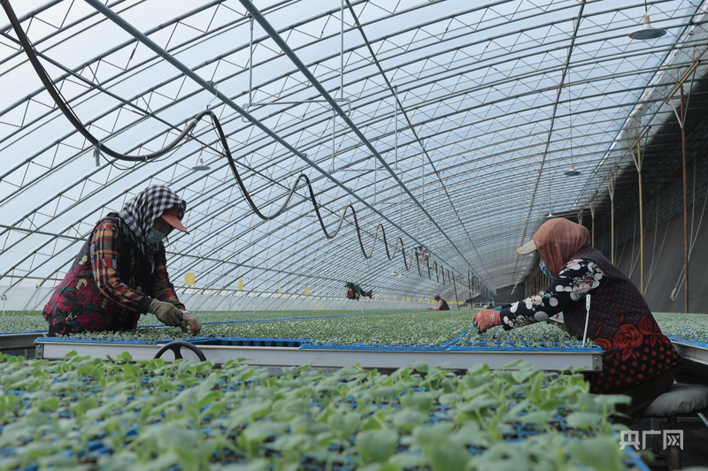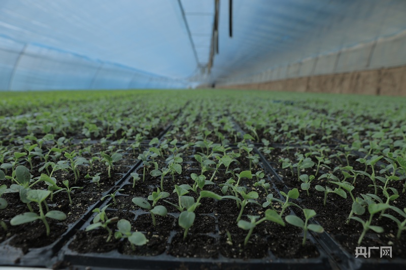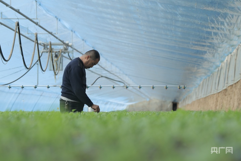 溫室大棚里農(nóng)戶(hù)在管理幼苗(央廣網(wǎng)發(fā) 劉九維 攝)
