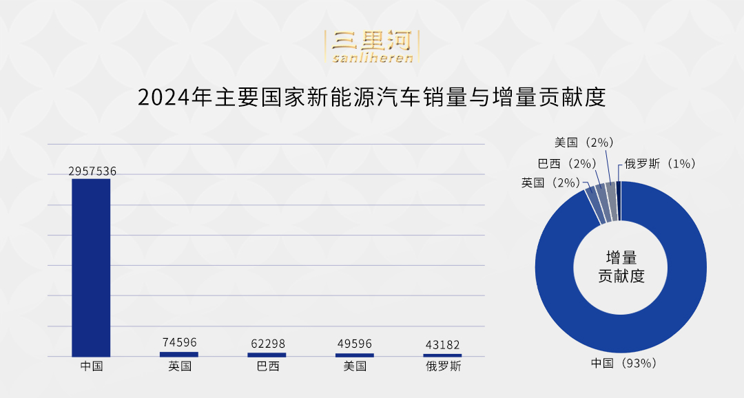 “2024年中國(guó)新能源乘用車銷量對(duì)世界的增量貢獻(xiàn)度是93%,英國(guó)、巴西、美國(guó)都是2%,俄羅斯1%,所以整個(gè)世界新能源車總體的增量貢獻(xiàn)基本就是在中國(guó)?!?/p>