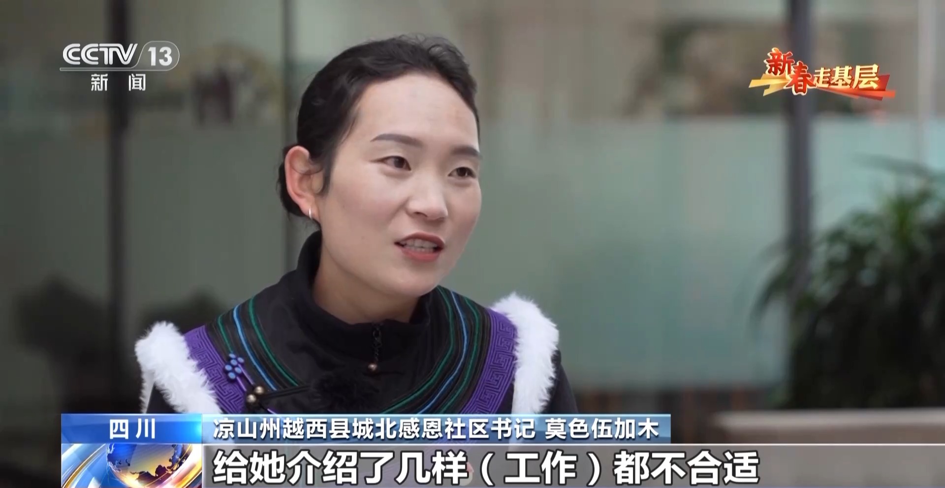 涼山州越西縣城北感恩社區(qū)書記 莫色伍加木:她就找我吵架,給她介紹了幾樣工作都不合適,她說(shuō)那你到底是不是真的給我介紹了,你到底是不是出于好心,你到底安的什么心,我當(dāng)時(shí)我就覺(jué)得太委屈了,要給他們一個(gè)一個(gè)解決,每個(gè)人的需求又不一樣。