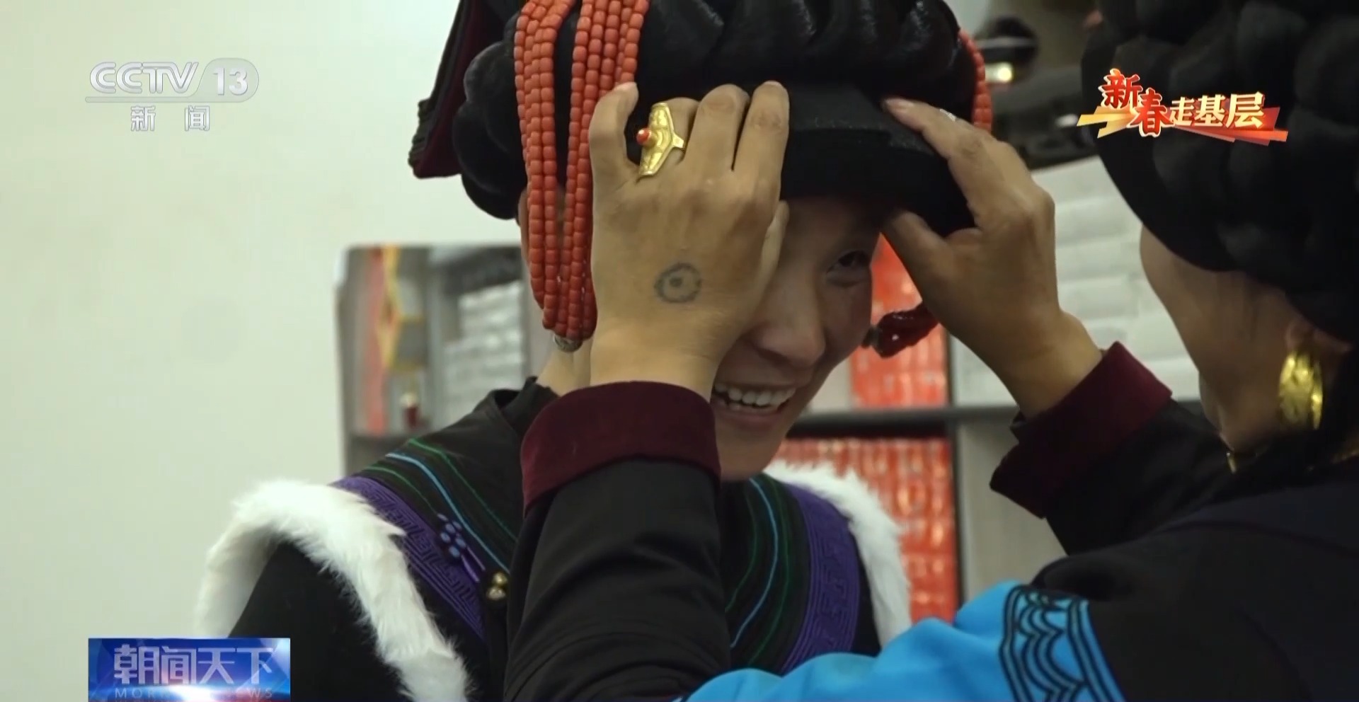 這位大姐給伍加木戴上了自己親手繡的頭飾。此時(shí),記者才意識(shí)到,她其實(shí)也只是個(gè)28歲的姑娘,正是愛(ài)美的年紀(jì)。