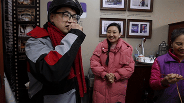 張德犇是負(fù)責(zé)天津市河北區(qū)望海樓街道昆云里社區(qū)快件派送的快遞員。最近,他每天都系著一條紅圍巾,在街道上格外引人注目。張德犇脖子上圍著的這條紅圍巾就是社區(qū)志愿者大姨們親手織的。社區(qū)工會(huì)驛站將圍巾送給了他,以此來感謝他對(duì)社區(qū)的無私奉獻(xiàn)。