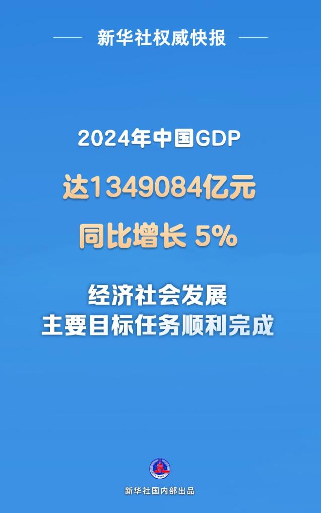 2024年中國國內(nèi)生產(chǎn)總值(GDP)達(dá)到1349084億元
