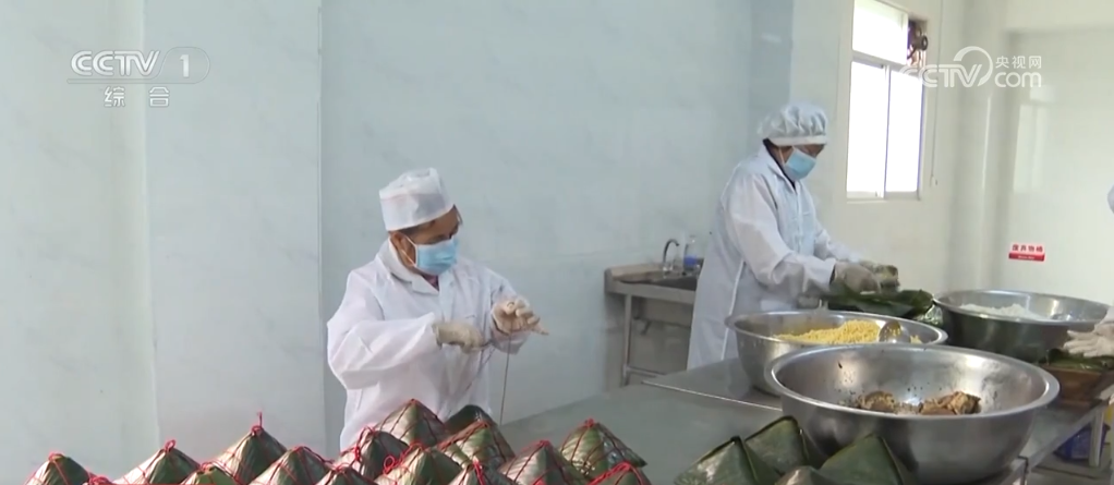 在廣西賓陽(yáng),各年貨加工廠抓緊時(shí)間制作“甘棠三寶”,也就是大粽、扣肉和粉利。將蒸過的粽葉擺放好,按順序加入餡料,壓實(shí)包好后,再一起放入大鍋中進(jìn)行熬煮,這就是大粽。將精選的五花腩肉及相關(guān)配料進(jìn)行腌制、油炸,這就是扣肉。蒸熟的粉利切塊,淋上花生油和醬油,加一勺酸辣醬就可享用。