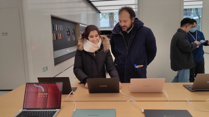 中國(guó)蓬勃的科技創(chuàng)新力同樣吸引外籍游客。在位于上海市南京路步行街的華為旗艦店,記者見(jiàn)到很多外籍游客拍照、試乘華為新車。意大利游客戴維德(Davide)說(shuō),華為在意大利也很有名,很多人用華為手機(jī)。店員告訴記者,外籍游客比較喜歡M系列和P系列的華為手機(jī)。二折疊、三折疊的機(jī)型,也讓他們感到很新奇。