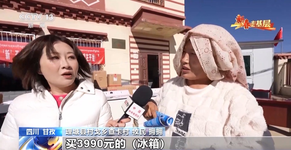 理塘縣村戈鄉(xiāng)查卡村 牧民 擁擁:買3990元的冰箱,準備帶回去,高興,補800多元就可以了。