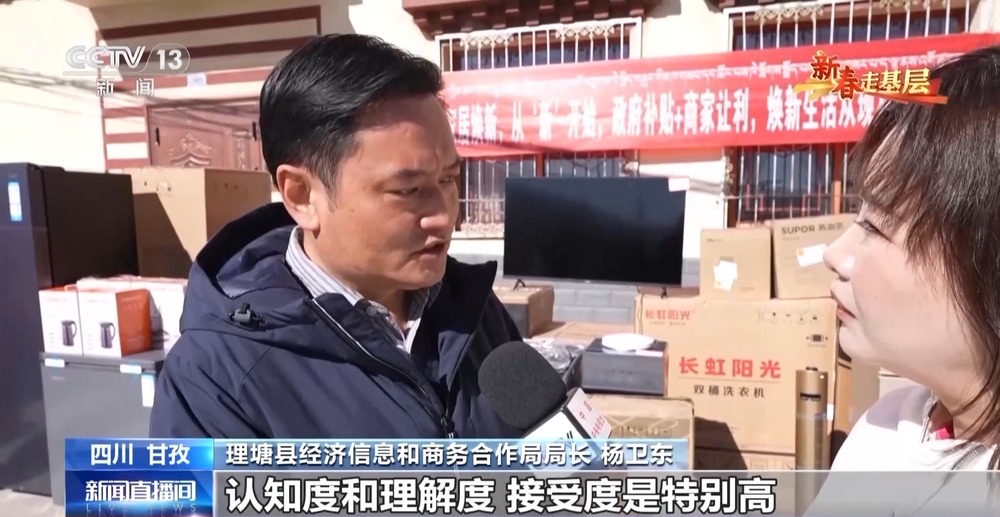理塘縣經(jīng)濟信息和商務合作局局長 楊衛(wèi)東:老百姓對以舊換新認知度和理解度、接受度特別高,現(xiàn)在家電普及率達到80%以上,家電銷售的數(shù)量比往年增長30%以上。