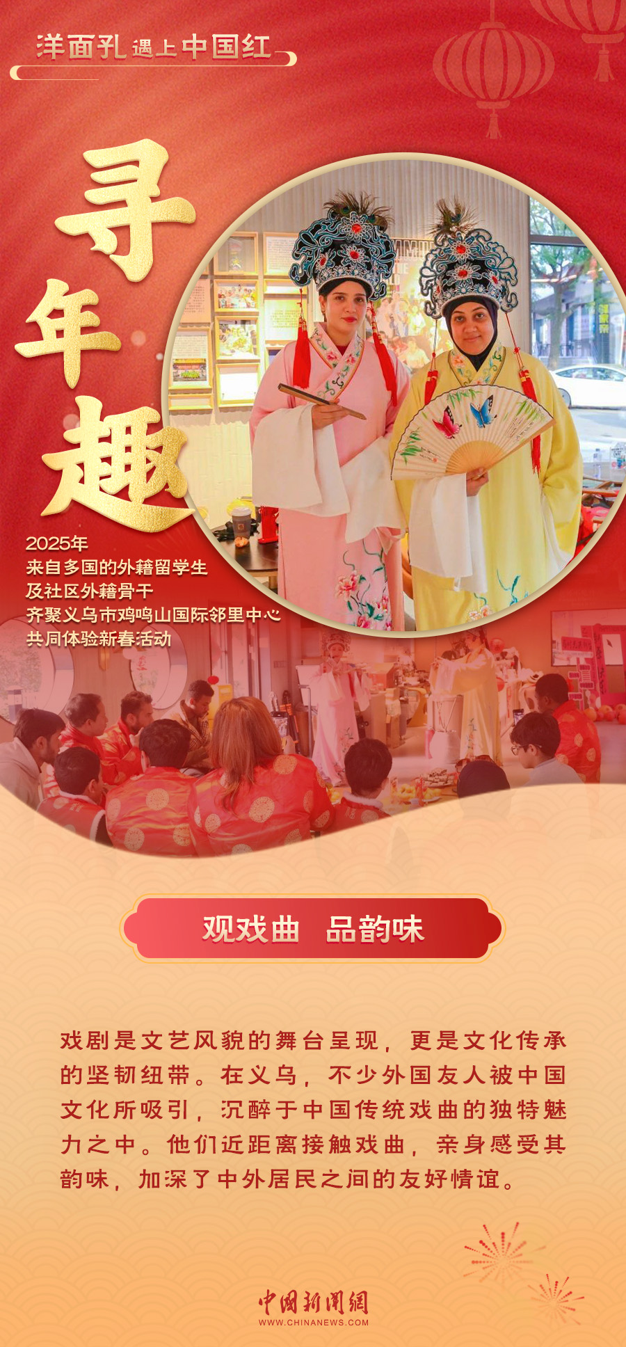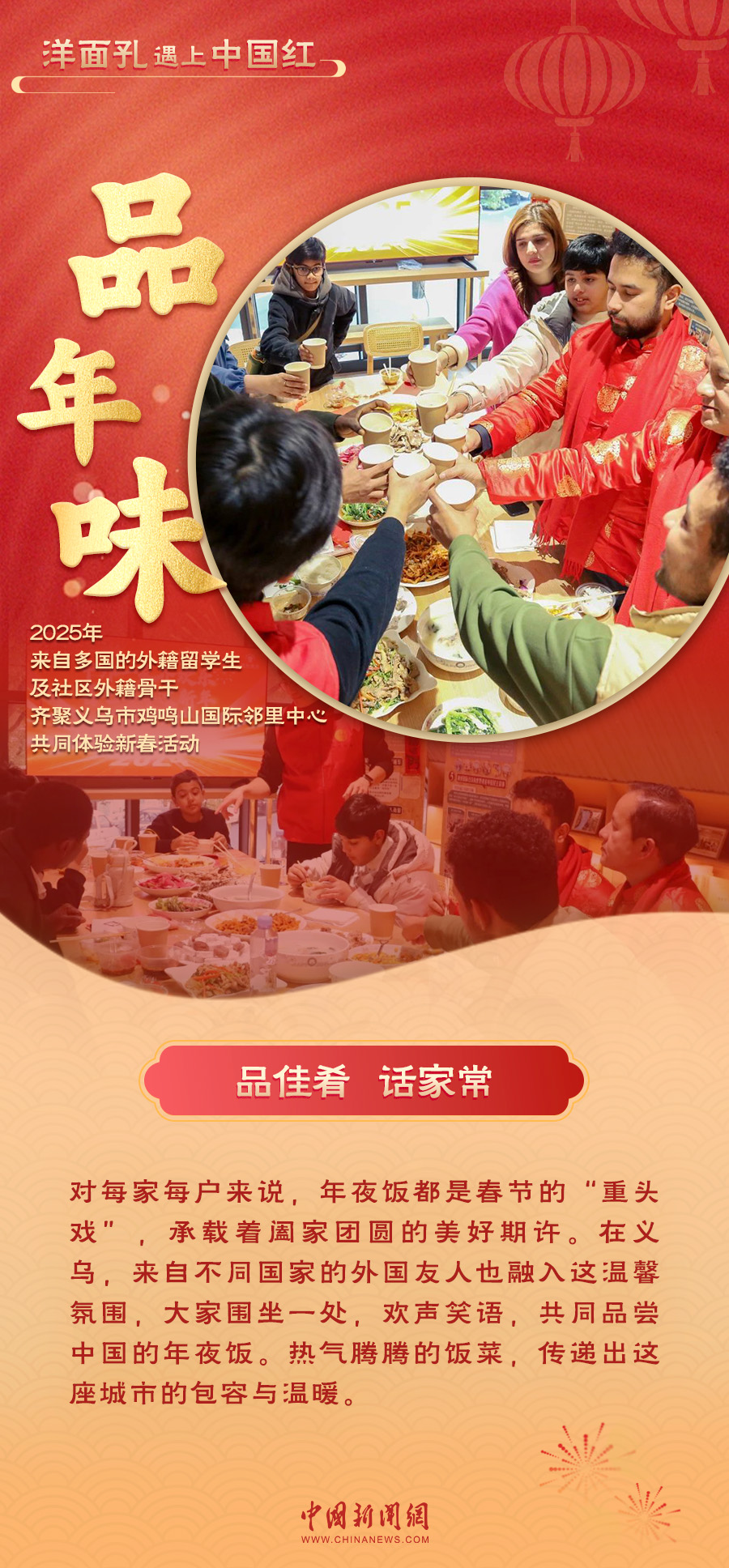 當(dāng)“洋面孔”遇上“中國紅”,一場跨越文化的交融在義烏上演。紅火的對聯(lián)、熱鬧的戲劇表演、香甜的年夜飯……外國友人們沉浸在中國年的喜慶氛圍中,感受著這份獨特的溫暖與歡樂。義烏的年味,不僅溫暖了“世界老鄉(xiāng)”的心,也讓全球各個地方看到了中國年的魅力與溫度。